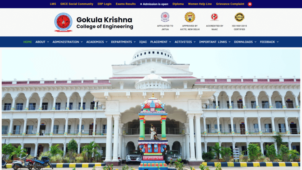 A fully developed official college website for GKCE, built with WordPress and Elementor, featuring academic details, events, notices, and student resources in a clean, modern design.