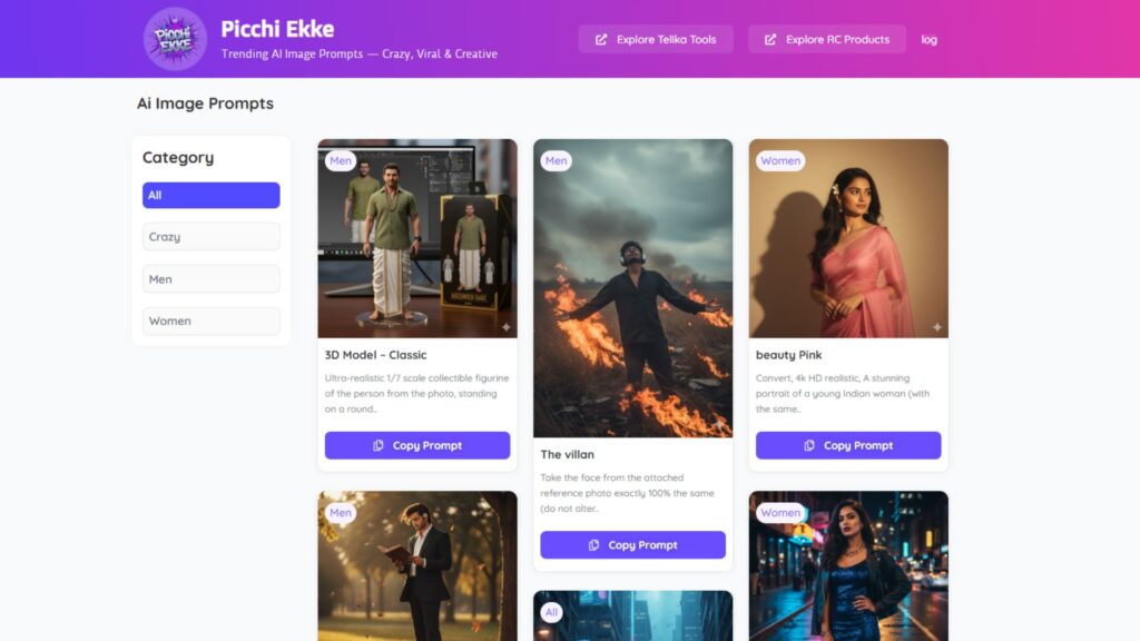 A trending AI image prompts website built in just 3 hours, featuring custom post types, filters, and stylish prompt cards for exploring creative, viral, and crazy AI visuals.