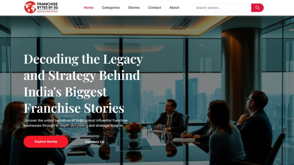 A storytelling-driven website built to decode the strategy and legacy behind India’s biggest franchise brands — designed and developed entirely in WordPress with a clean, media-rich layout.