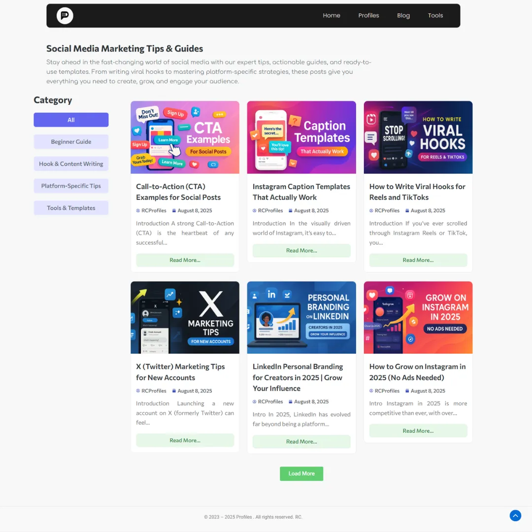 RC Profiles is a centralized hub that showcases all RC products’ social media profiles, alongside expert marketing blogs and digital tools to help creators and entrepreneurs grow their online presence.